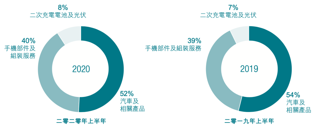 According to BYD’s 2020 semi-annual report, BYD’s automotive and related product businesses accounted for only 52% of total revenue-a slight decrease compared to the same period in 2019, which may be attributed to the significant weakness in the vehicle market under the influence of the epidemic in the first quarter. In addition, mobile phone components and assembly services accounted for 40% of BYD’s revenue, which is also one of BYD’s pillar businesses, with secondary rechargeable batteries and photovoltaics accounting for 8%.