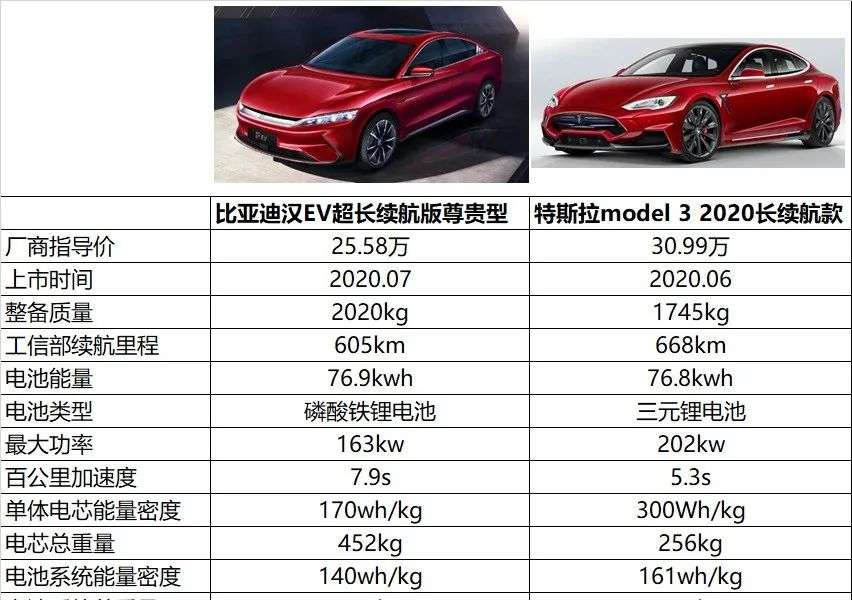 BYD’s Han EV has a battery cell energy density of 170wh/kg. After the battery pack is formed, the battery’s system energy density drops to 140wh/kg, and the group efficiency is 82.53%; Tesla’s latest model 3 long battery life version, battery cells Using Panasonic's 21700 battery, the cell energy density is nearly double that of the lithium iron phosphate blade battery used in BYD Han EV.
